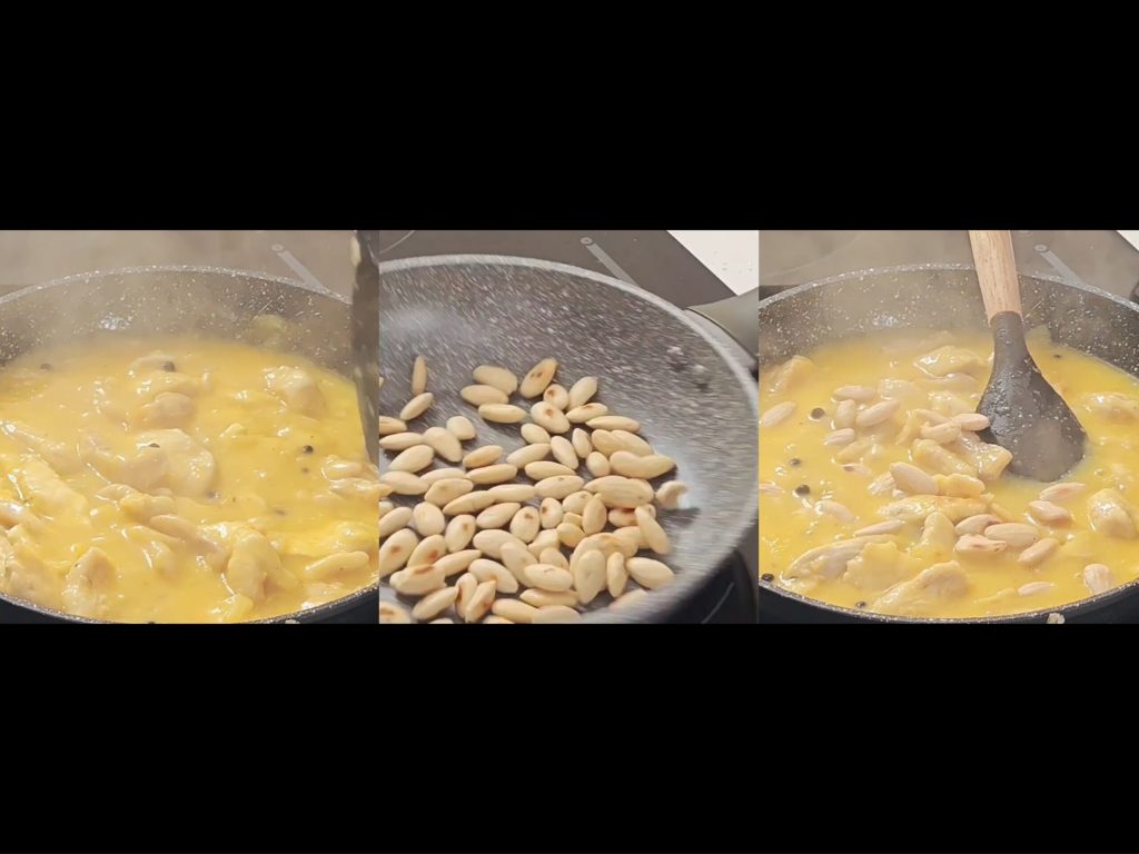 Faites griller les amandes et ajoutez-les.