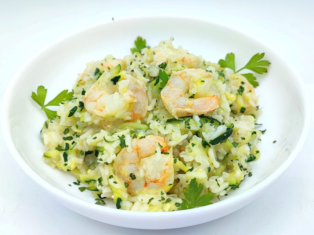 Un plat principal léger et très savoureux à déguster tous les jours de l’année, d’un jour férié à un simple lundi soir en famille. Un risotto fait avec des courgettes et des crevettes, une excellente combinaison très appréciée par notre palais. Le risotto courgettes et crevettes est parfait pour être intégré dans tout type de menu de poisson ou non. Une recette très simple à préparer qui sera certainement très appréciée!