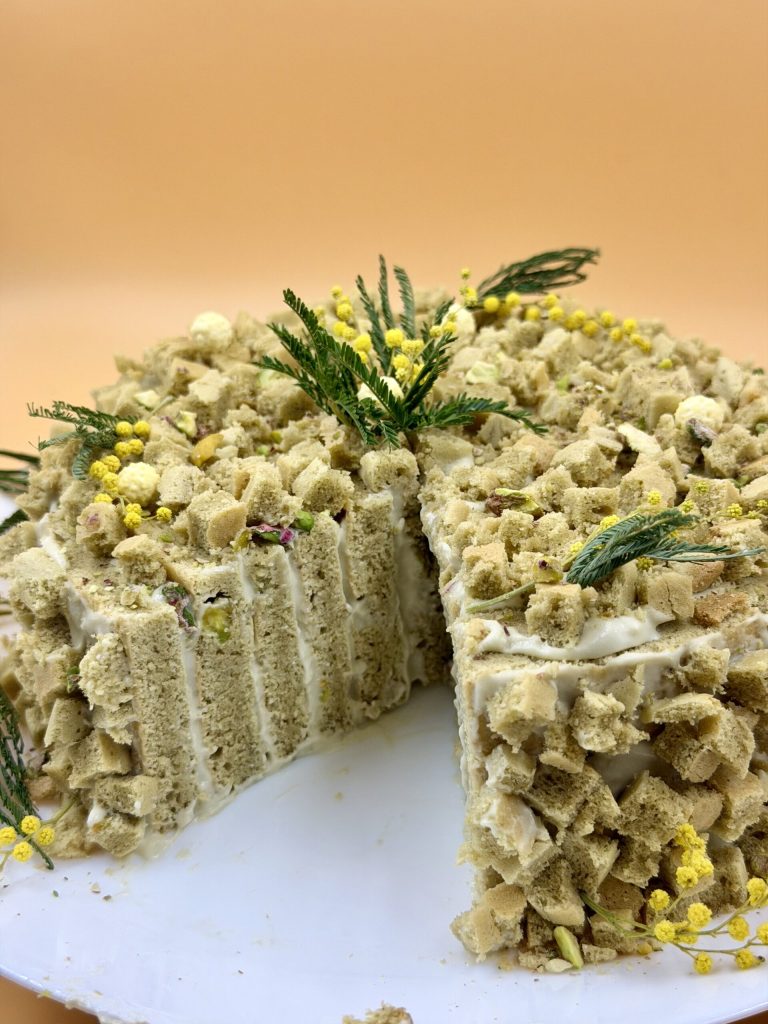 Si tu me suis un peu, tu sais : la pistache est ma préférée, elle me rend complètement dingue. Et comme le 8 mars on ne peut pas se passer d’un gâteau mimosa, j’ai décidé de créer une version encore plus gourmande : voici le roulé mimosa au pistache. Il est moelleux, crémeux, spectaculaire et très parfumé : un gâteau qui séduit au premier regard et à la première bouchée. Parfait pour célébrer la Journée de la femme avec quelque chose d’un peu différent, mais toujours super élégant.
