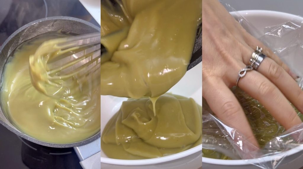 Préparons la crème au pistache :