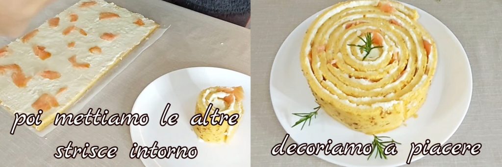 Une tarte salée en forme de roulé avec à l’intérieur une crème au saumon et ensuite garnie avec du stracchino et des morceaux de saumon fumé. Je pense que c’est un plat que vous devez absolument apporter à table pour les fêtes de Noël ou le réveillon du Nouvel An! Une recette impressionnante, très bonne et que nous pouvons servir comme entrée dans nos menus de Noël et pas seulement ! Bref, si vous avez besoin d’une entrée simple mais spectaculaire, essayez ce roulé!