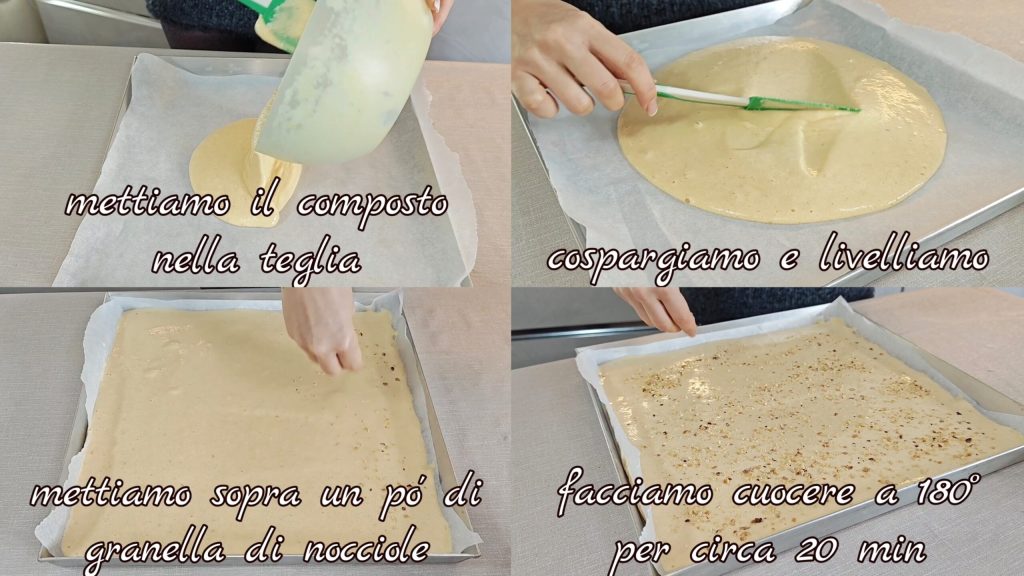 Mettre le papier sulfurisé dans le moule (35×35 cm). Saupoudrer et niveler. Cuire à 180° pendant environ 20 min.