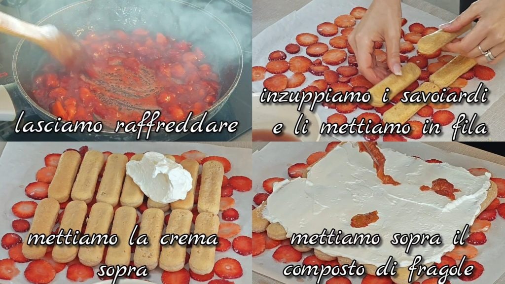 Un rouleau très simple préparé sans cuisson en utilisant des biscuits à la cuillère comme base, et pour la garniture une douce crème de ricotta et de crème fraîche enrichie d’une couche de fraises passées à la poêle. Un dessert très rapide à préparer que nous pouvons déguster en toute occasion ! Si vous aimez les fraises, essayez ce rouleau !