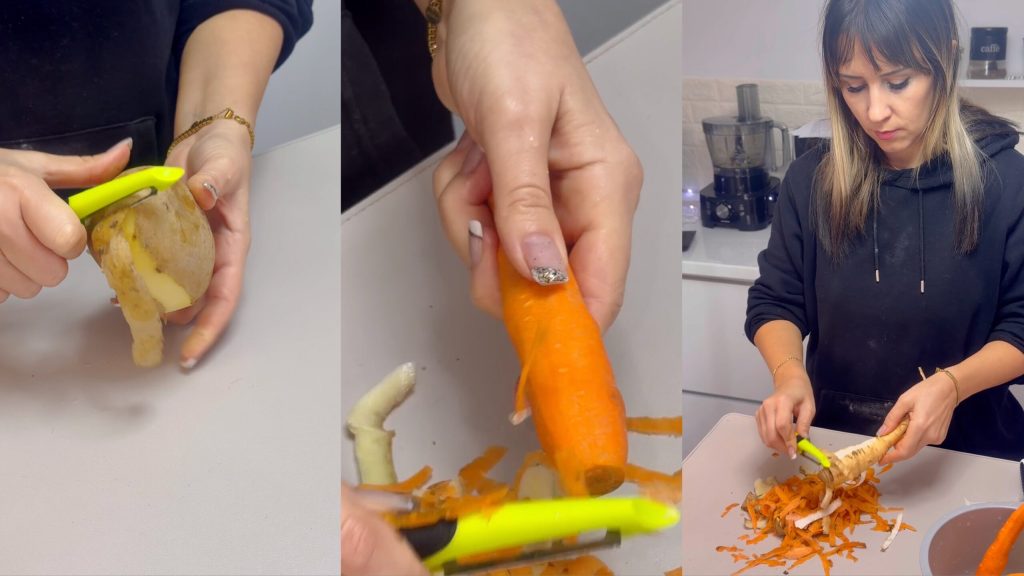 Mettons les pommes de terre, les petits pois, les carottes et le céleri-rave