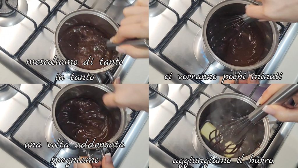 Portons-la sur le feu pour l’épaissir en remuant. Cela prendra quelques minutes. Une fois épaissie, éteignons le feu, ajoutons le beurre.