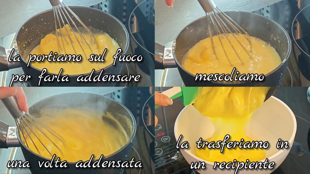 Nous la mettons sur le feu pour qu’elle épaississe. Mélangeons toujours. Une fois épaissie, nous la transférons dans un récipient