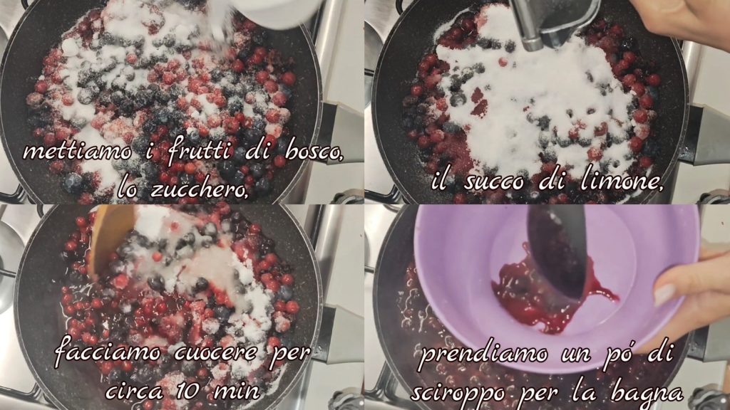 Tout d’abord, nous nous occupons des fruits des bois, nous pouvons utiliser des fruits frais ou surgelés. Mettez les fruits dans une casserole, ajoutez le sucre, le jus de citron et faites cuire environ 10 minutes en remuant de temps en temps. Mettez de côté un peu de sirop pour le trempage.