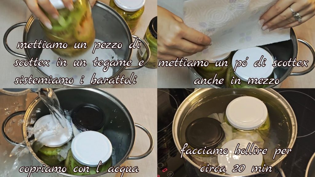 Disposez les bocaux dans une casserole avec un peu de papier absorbant au fond et entre les bocaux. Couvrez d’eau et faites bouillir environ 20 minutes.
