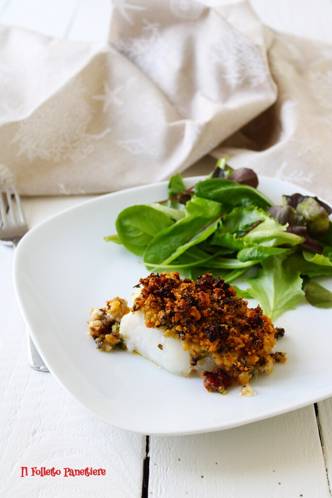 La particularité de mon cabillaud gratiné est l’utilisation des taralli émiettés à la place de la chapelure. Cela permet de réaliser une panure plus croustillante et savoureuse ; de plus, on peut aussi recycler des taralli qui ne sont peut-être plus optimaux car un peu rassis, donc c’est aussi une bonne recette anti-gaspillage.
