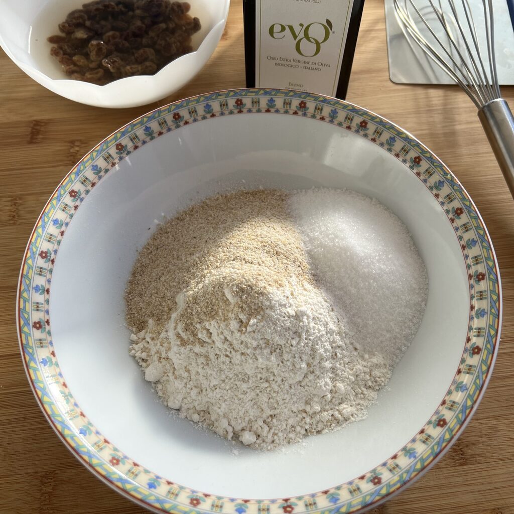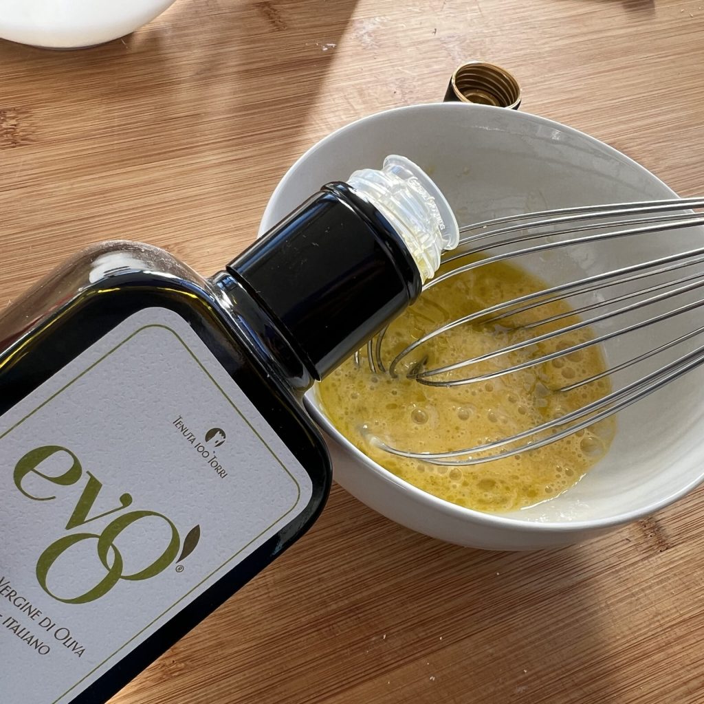 Pour ma version préparée sans utilisation de beurre, mais à base d’huile d’olive extra-vierge, j’ai choisi l’extra-vierge Evoo Blend Premium Organic de la Tenuta 100 Torri. Délicat, mais avec un parfum intense, agréablement doux au palais et avec des notes d’amande et d’herbes aromatiques, il est parfait pour sublimer le goût de ce gâteau riche en fruits secs.
