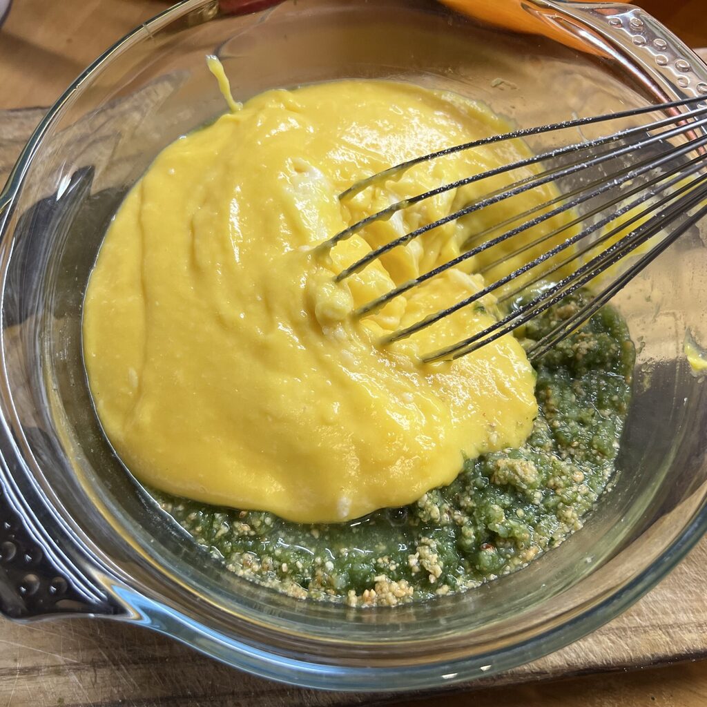et incorporez cette crème aux brocolis passés en ajoutant également la farine de noisettes