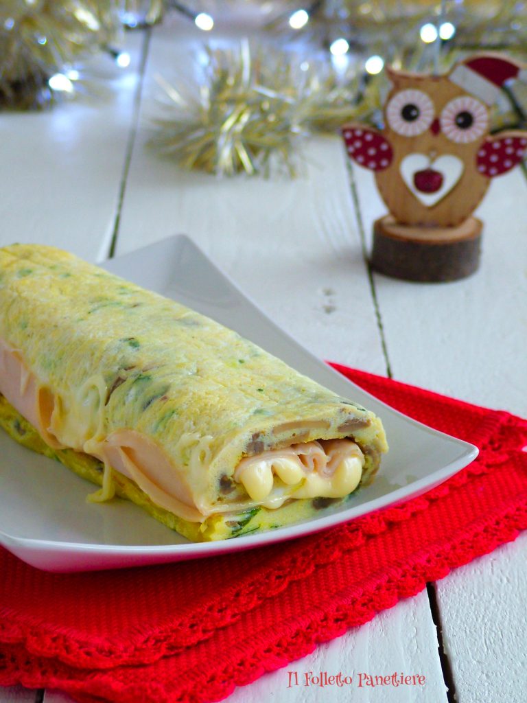 Si vous voulez changer le goût (et la couleur) de votre rouleau d’omelette, vous pouvez aussi essayer une version plus estivale avec des courgettes à la place des champignons et du jambon cuit au lieu du jambon de dinde.
