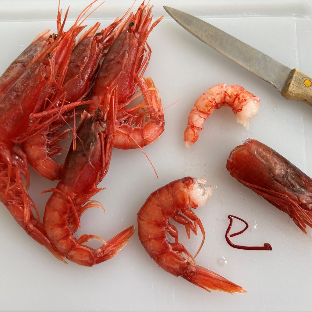 Nettoyez les crevettes, détachez la tête, décortiquez-les et enlevez le boyau