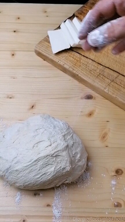transfère la pâte sur le plan de travail, ajoute le sel et