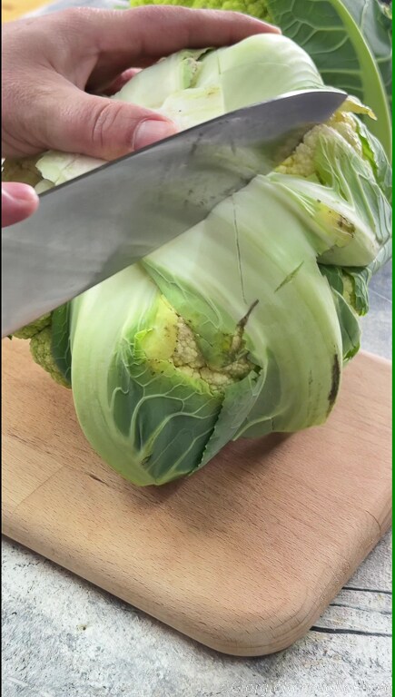 Pour préparer le chou-fleur à la poêle, commencez par nettoyer le chou-fleur, en enlevant les feuilles extérieures.