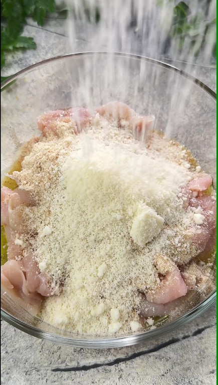 La garniture est enrichie d’un mélange d’arômes frais et intenses : le persil haché et l’origan frais se combinent à l’ail pour conférer des parfums méditerranéens, tandis que l’huile d’olive extra vierge rehausse la saveur naturelle du poulet et rend la panure dorée et savoureuse. Le sel et le poivre complètent la recette, équilibrant les saveurs et apportant cette touche de salinité qui rend ce plat équilibré et adapté à tous les palais.