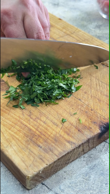 Hache très finement un bouquet de persil,