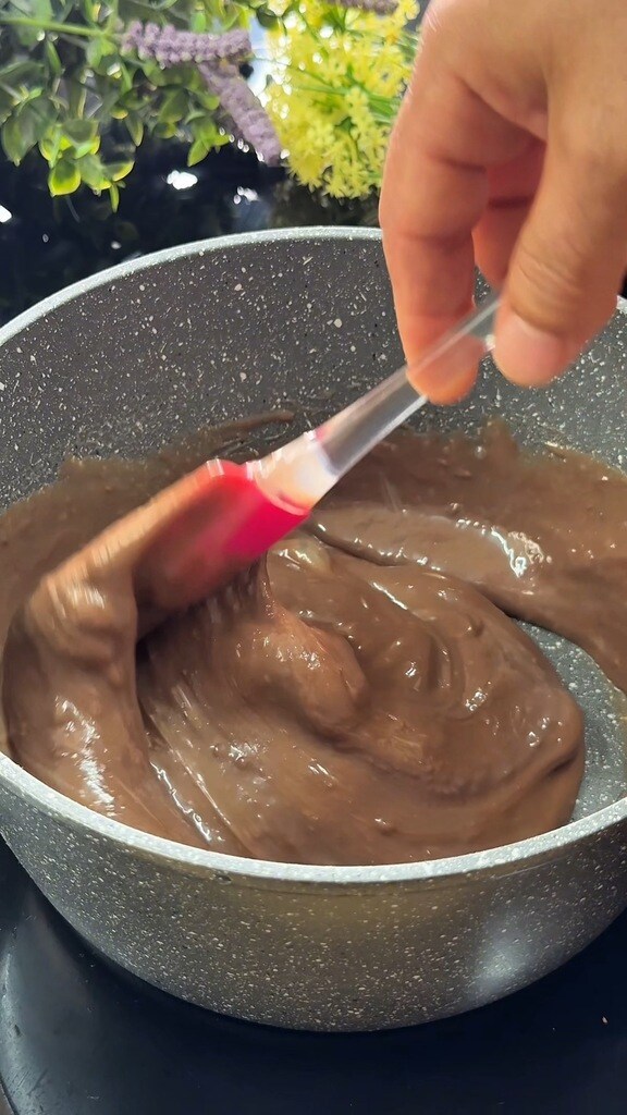 Fais fondre à feu doux en remuant continuellement jusqu’à obtenir un mélange lisse et homogène.