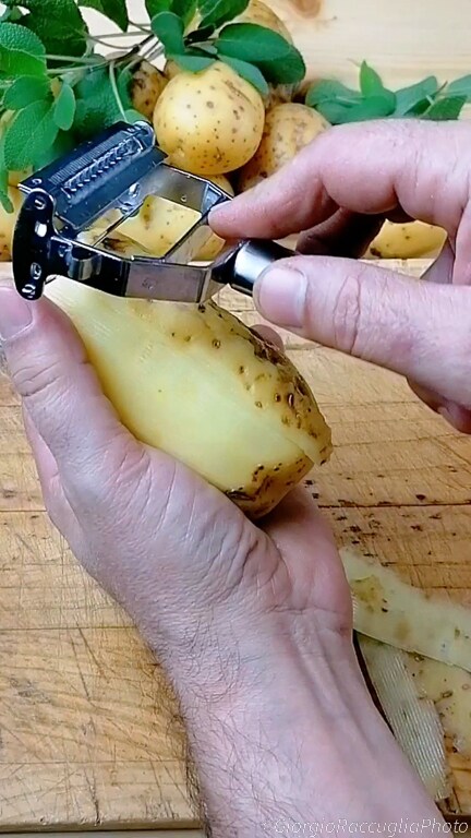Pour préparer le mille-feuille de pommes de terre au four, commence par éplucher les pommes de terre,