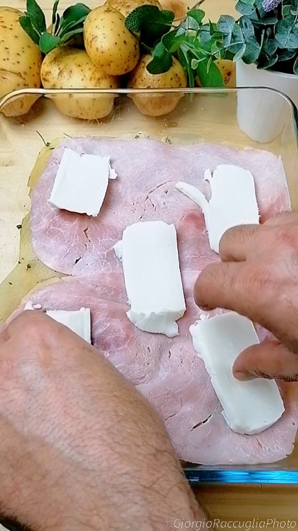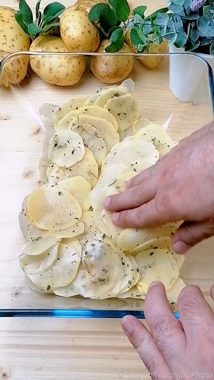 Le mille-feuille de pommes de terre au four est un plat au charme irrésistible, une explosion de saveurs et de textures qui ravit le palais avec des couches croustillantes et succulentes. Cette préparation allie la simplicité des ingrédients de base à la complexité d’une présentation élégante et sophistiquée. Les pommes de terre, éléments principaux de cette recette, servent de toile pour une symphonie de goûts, enrichies de couches de mozzarella filante, de jambon cuit savoureux, de parmesan râpé pour une touche d’intensité, et d’un mélange d’herbes aromatiques comme le romarin et la sauge pour rehausser davantage le profil gustatif.