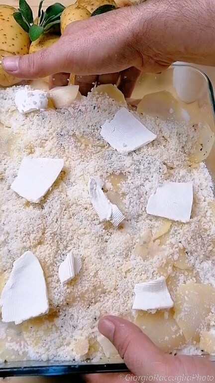 la dernière pincée de parmesan râpé et des flocons de beurre.