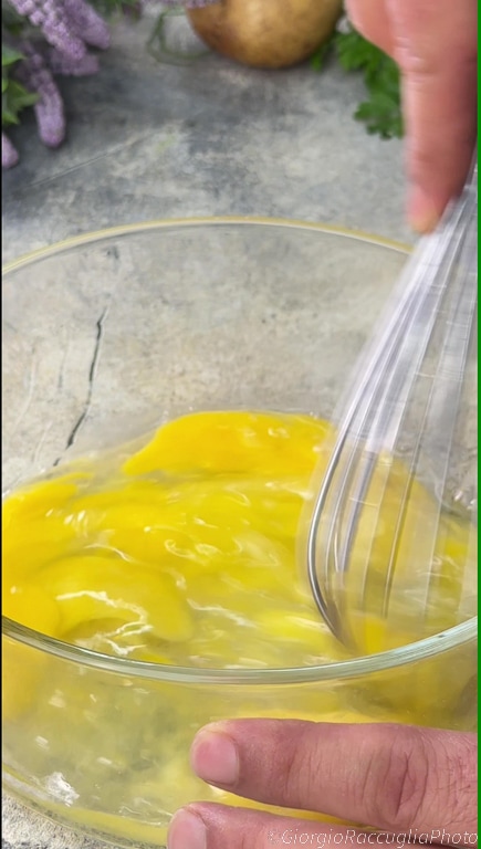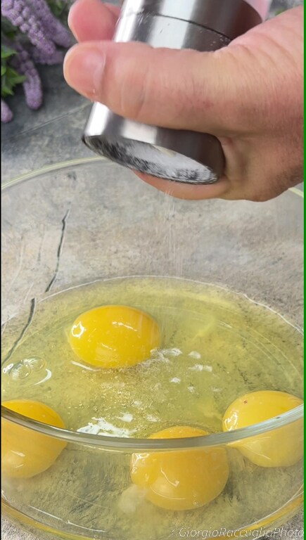 La mille-feuille pourrait être cuisinée ainsi, mais j’ai voulu essayer avec l’ajout des œufs donc, dans un bol, mettez les œufs et assaisonnez de sel,