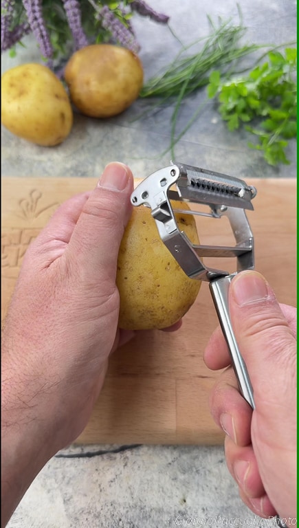 Pour préparer la mille-feuille de pommes de terre, commencez par éplucher les pommes de terre et