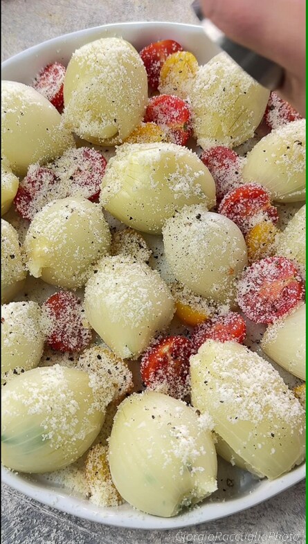 Faites cuire dans un four préchauffé à 180°, fonction gratin, pendant environ 10/15 minutes ou jusqu’à ce qu’une belle croûte se soit formée sur les oignons.