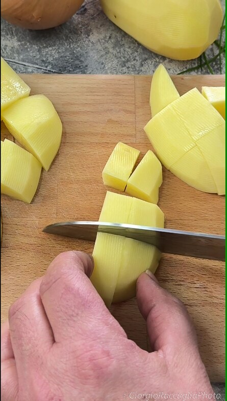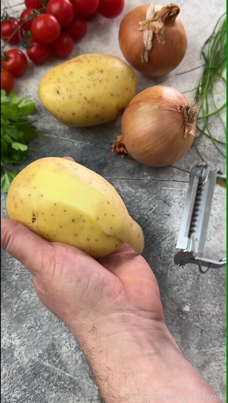 Pour préparer la recette des oignons farcis gratinés, commencez par éplucher les pommes de terre,