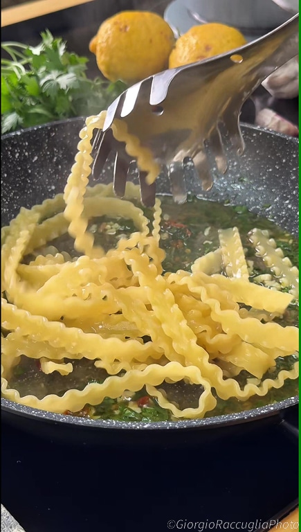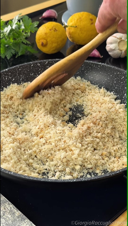 complétez avec une pincée de persil frais haché et abondante ‘muddica atturrata’ pour une touche croquante et authentique.