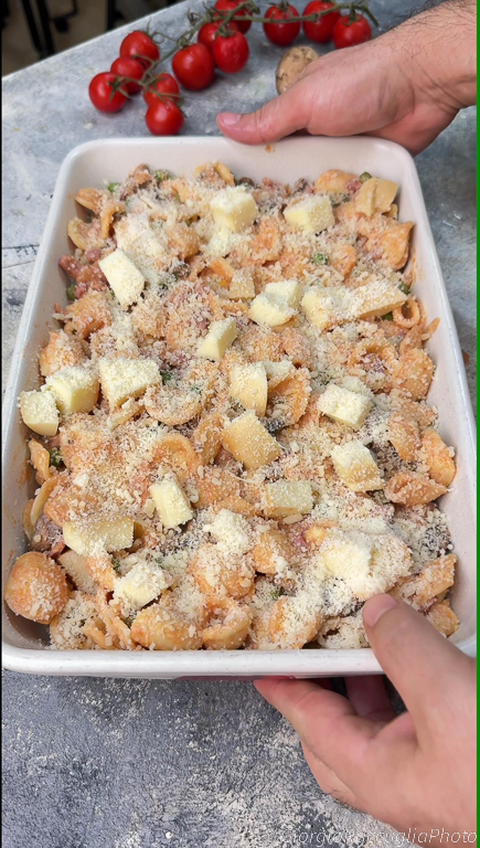 - 500 g orecchiettes (vous pouvez également utiliser des penne, rigatoni ou mezze maniche)