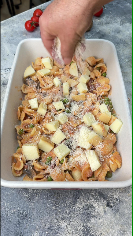 Complétez avec un peu plus de scamorza fumée et de parmesan sur le dessus.