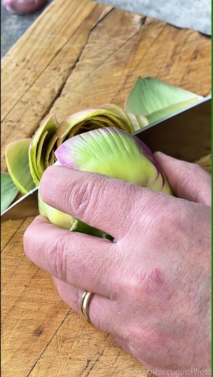 Maintenant, coupez les artichauts en deux,