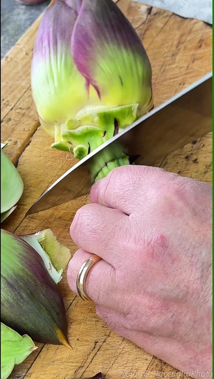 nettoyez le reste de la tige des artichauts.