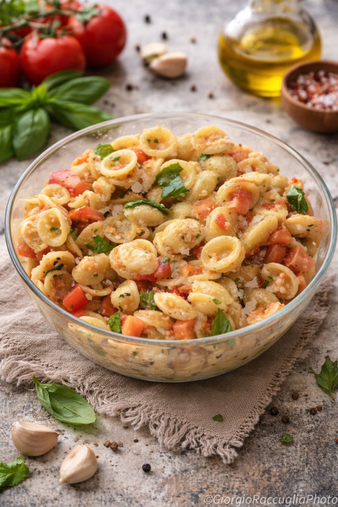 Les pâtes froides au pesto alla trapanese sont un plat typique de la tradition sicilienne, en particulier de la région de Trapani. Cette préparation, savoureuse et simple, est parfaite pour tous les mois d’été grâce à sa fraîcheur et ses saveurs intenses. Le plat trouve ses racines dans la rencontre entre les influences maritimes et les riches traditions agricoles de la Sicile.