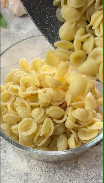 Égoutte les pâtes al dente et laisse-les refroidir.