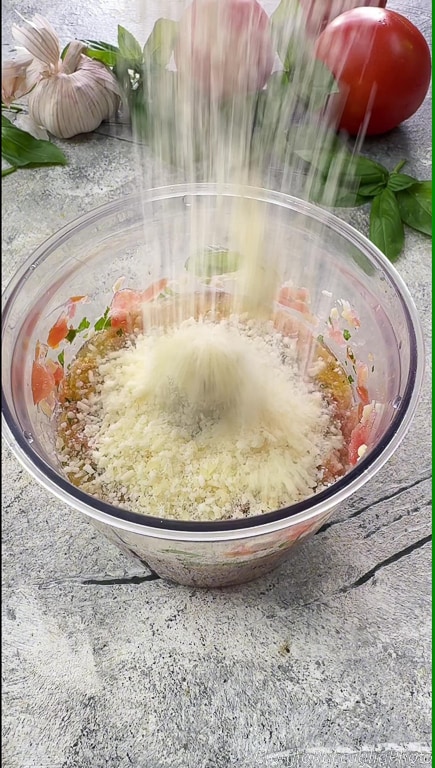 Ensuite, continue à mixer le tout jusqu’à obtenir un pesto dense et épais.