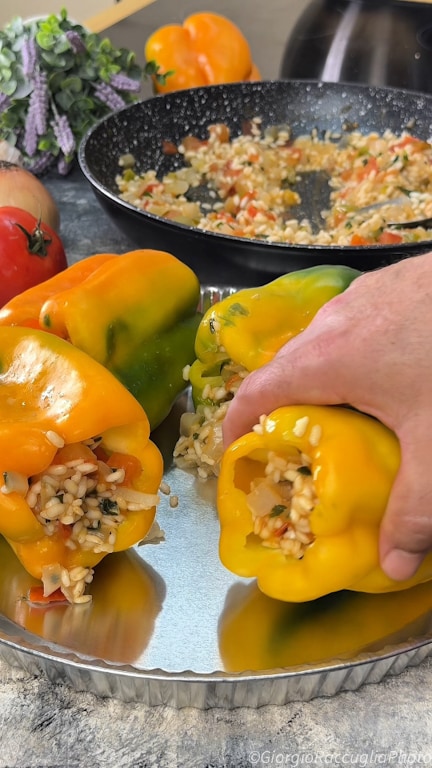 l’eau restante et faites cuire au four préchauffé à 180° pendant environ 45 minutes, jusqu’à ce que les poivrons soient tendres et légèrement dorés.