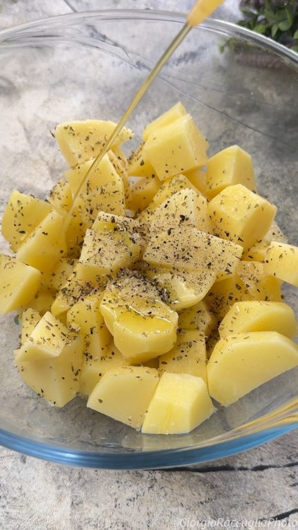 Mélangez le tout pour bien assaisonner les pommes de terre.