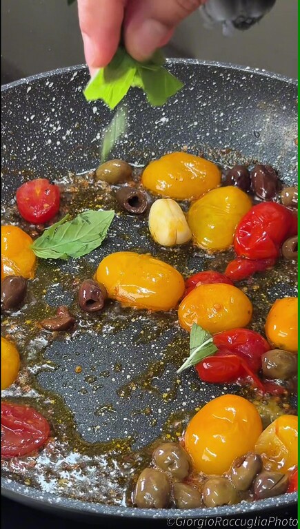 Dans une grande poêle, versez un filet d’huile d’olive et ajoutez une gousse d’ail entière. Faites revenir pendant 1-2 minutes.