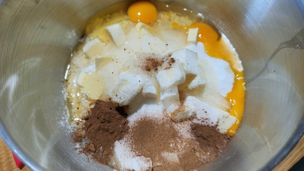 Dans le bol d’un robot muni d’une feuille, mettez tous les ingrédients, puis activez la machine et pétrissez jusqu’à obtenir un mélange homogène.