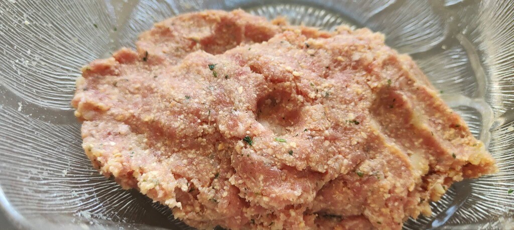 Dans un bol, mettons la viande hachée, l’œuf, le fromage râpé, le pain (que nous avons trempé dans le lait et essoré), le sel, le poivre, l’ail haché (si vous aimez), et le persil haché et mélangeons bien avec les mains.