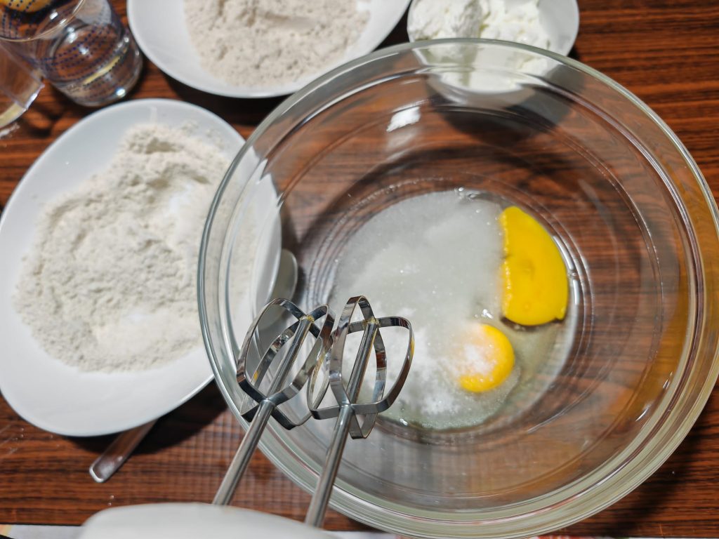 Maintenant, cassez les œufs dans un bol, ajoutez l’érythritol (ou le sucre).