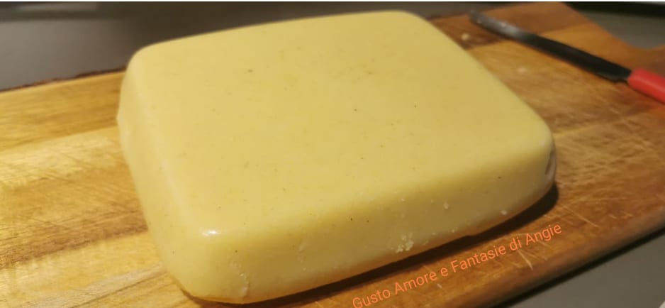 Pour commencer, on prépare la polenta, nous avons utilisé celle à cuisson longue de chez nous offerte par mon frère mais l’instantanée convient aussi après l’avoir cuite, on l’a étalée dans un plat rectangulaire.
