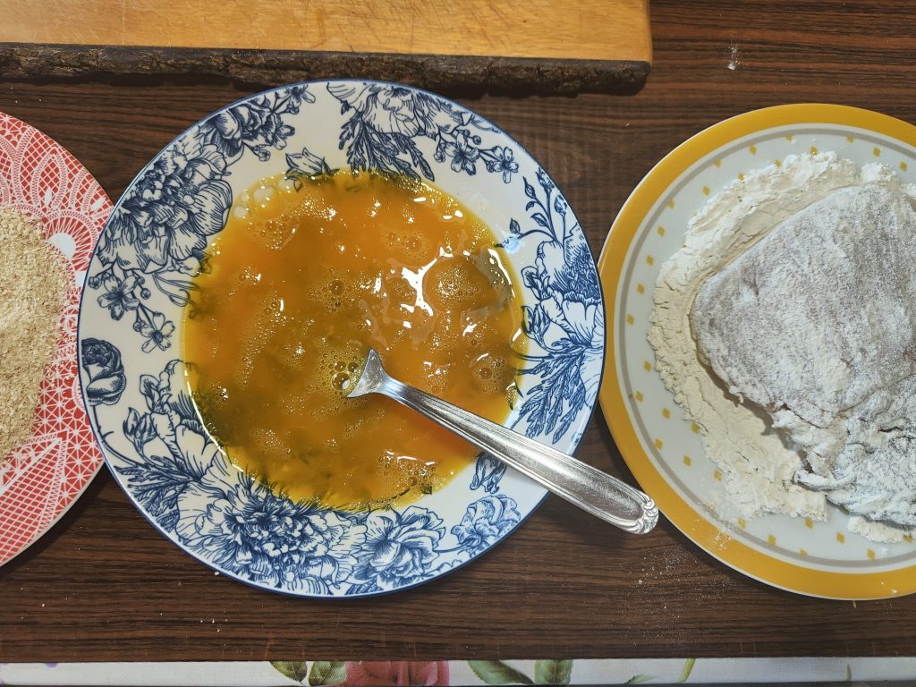 Faites une double panure donc à nouveau dans l’œuf et ensuite dans la chapelure.