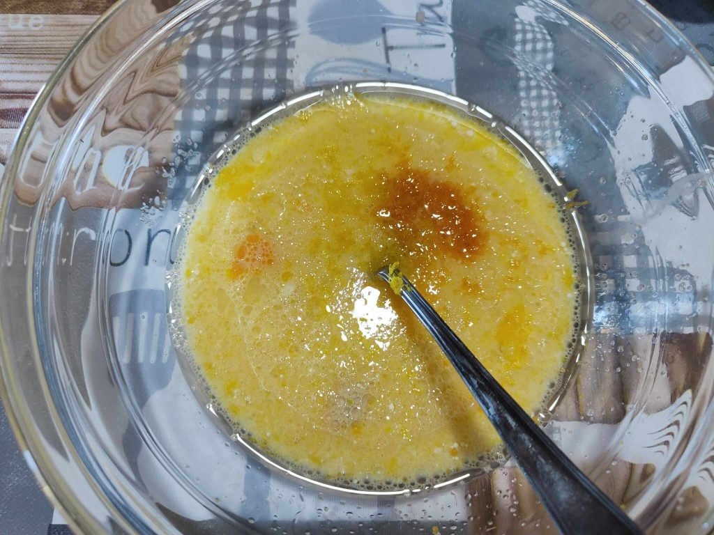 Ajoutez les œufs, l’huile de tournesol, le zeste de citron et d’une orange.