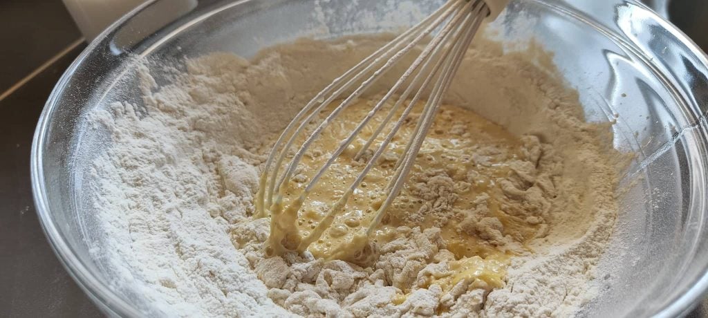 Ensuite, dans un deuxième bol, battez les œufs et mélangez-les avec un fouet à main.