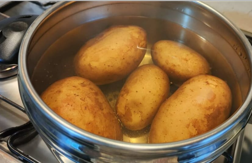Pour préparer les croquettes de pommes de terre, lavez les pommes de terre sous l’eau courante pour enlever les résidus de terre, placez-les à cuire dans une grande casserole en versant de l’eau jusqu’à les couvrir et sans les éplucher, utilisez des pommes de terre autant que possible de la même taille pour uniformiser la cuisson.