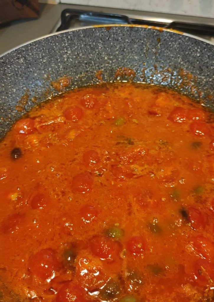 Dans cette recette, certains utilisent des câpres, d’autres non : j’ajoute quelques olives vertes, je trouve qu’elles contrastent parfaitement avec la douceur des tomates cerises, donnant au plat un bon coup de pouce, mais essayez les différentes versions et dites-moi laquelle vous préférez.