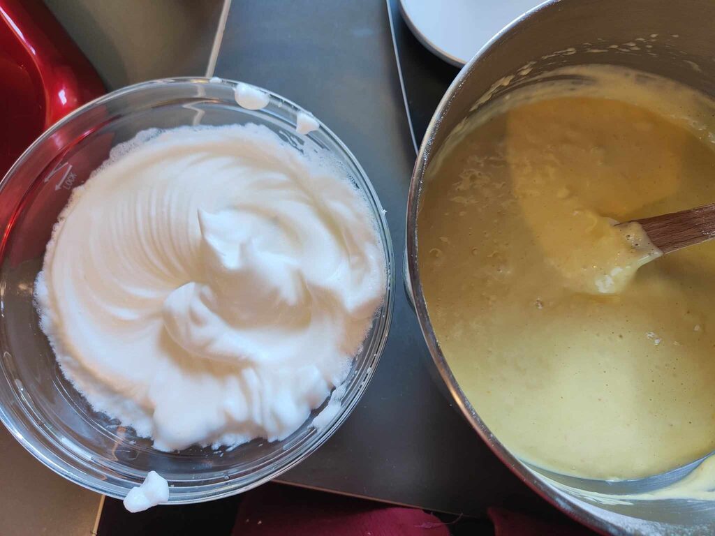 Tout d’abord, montez les blancs en neige bien ferme avec une pincée de sel.